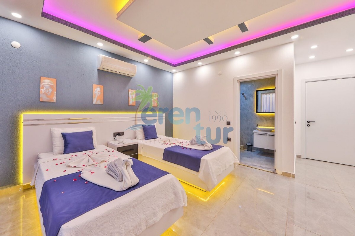 3. Yatak Odası: İki adet tek kişilik yatak, klima, gardırop, komidin ve özel banyo-WC bulunan bir oda mevcuttur.