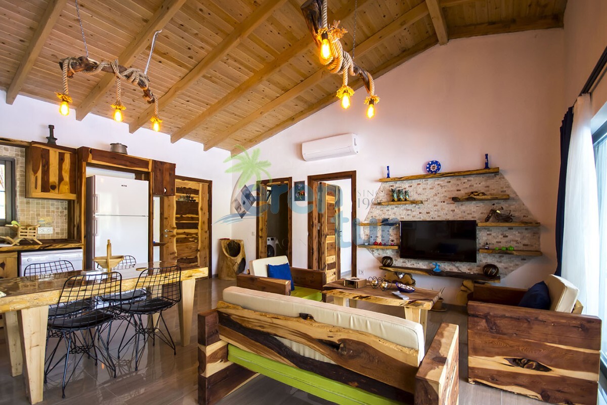 Villamızda iki yatakodası açık plan salon ve mutfak vardır.Villamızın yatakodalarından bir tanesi ebeveyen yatakodası olup çift kişilik yatak vardır diğer yatakodasında ise iki adet tek kişlk yatak bulunmaktadır.Tüm odalarında klima banyo WC mevcuttur.
