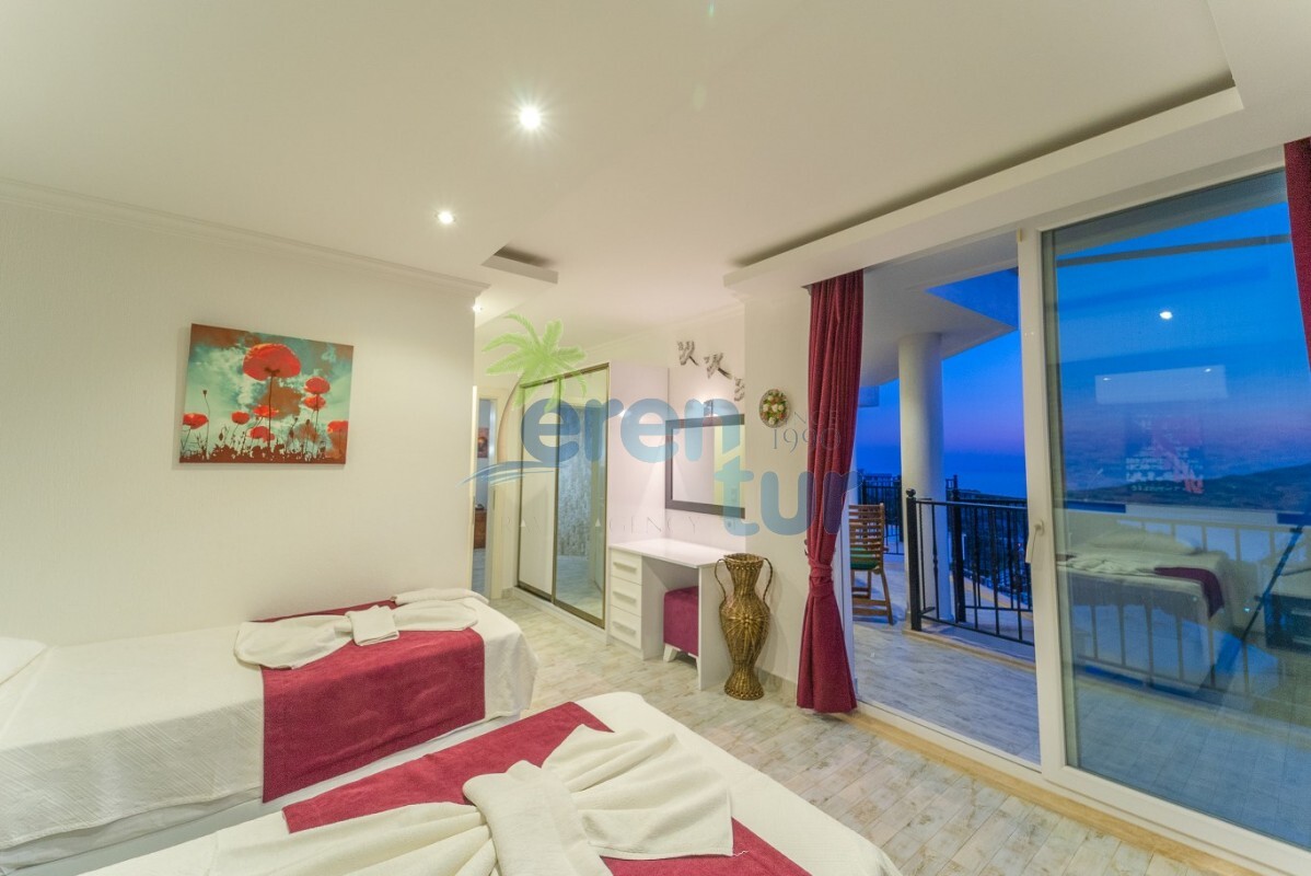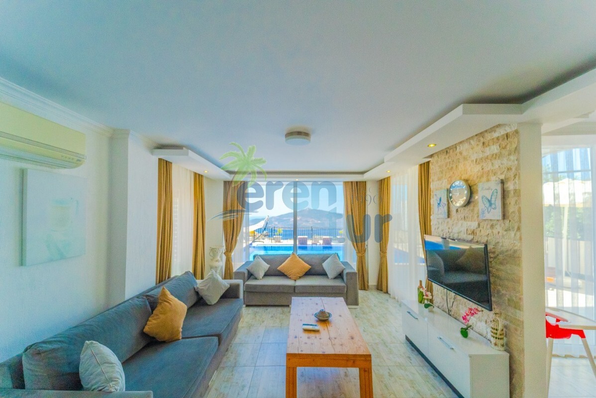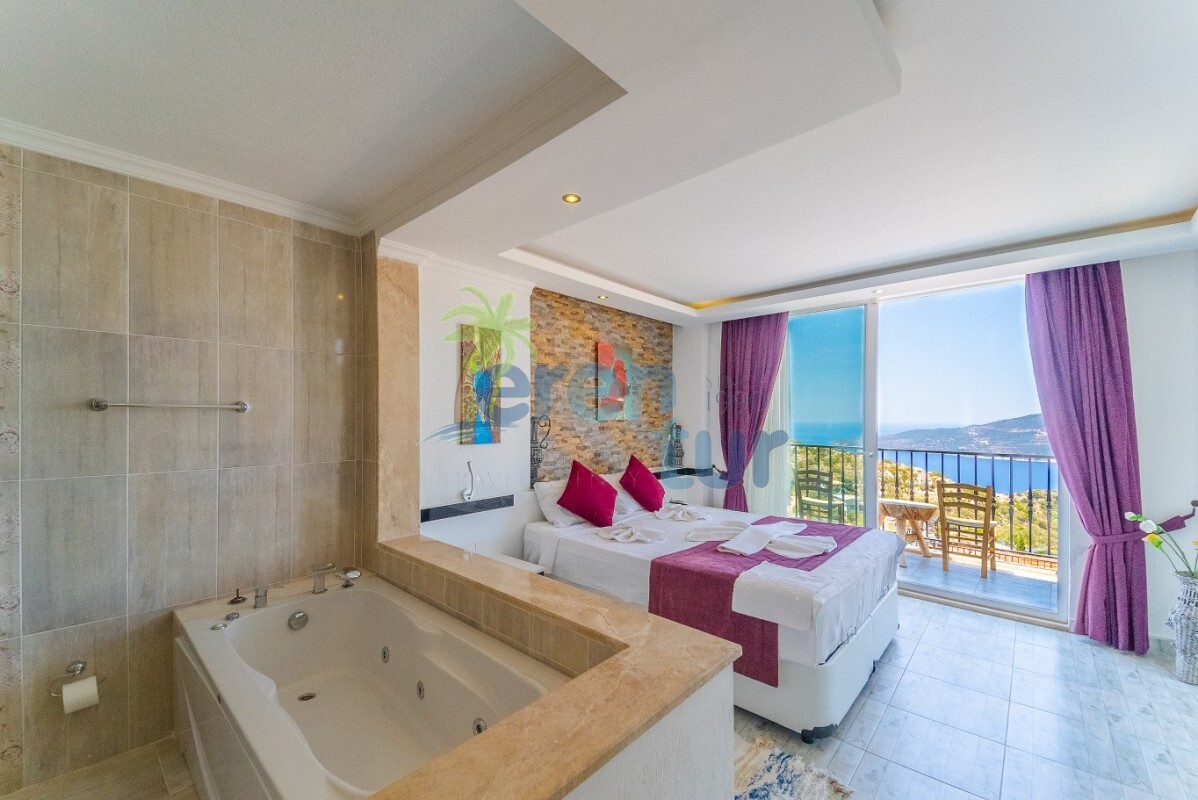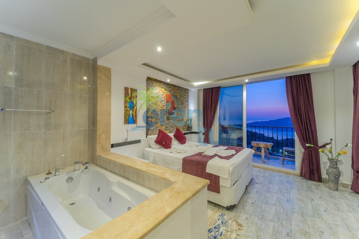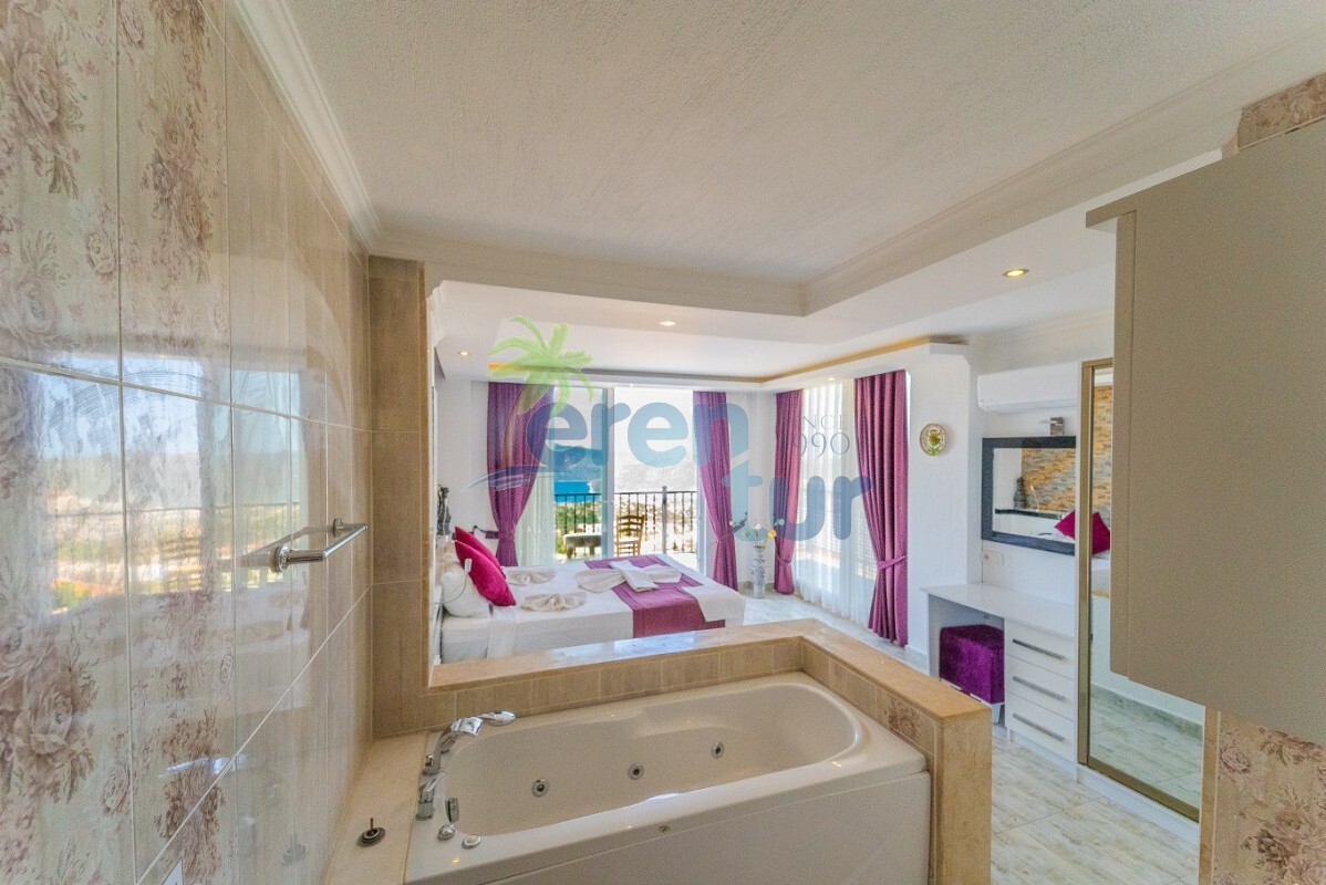 Villamızın özellikleri arasında, geniş ve ferah bir oturma odası, modern bir açık plan mutfak ve banyolu bir süit yatak odası bulunmaktadır. İkinci katta ise iki adet çift kişilik süit yatak odası yer alır. Ana yatak odası, deniz manzarasına karşı açık bir jakuzi ve geniş bir banyo sunmaktadır. Villamızda ayrıca ortak kullanım balkonu, muhteşem Kalkan koyu manzarasına karşı içeceklerinizi yudumlayabileceğiniz bir oturma grubu ile donatılmıştır.
