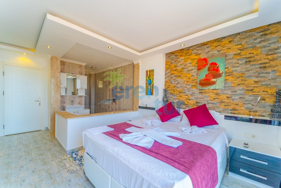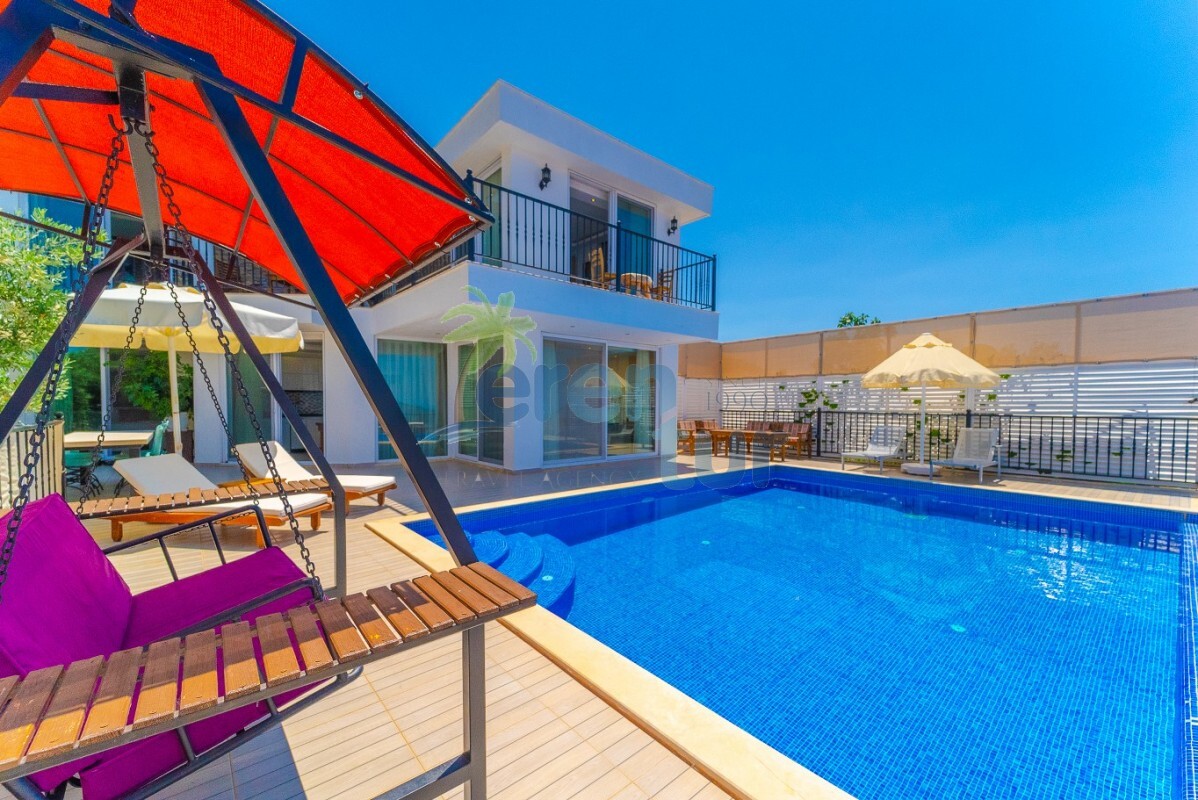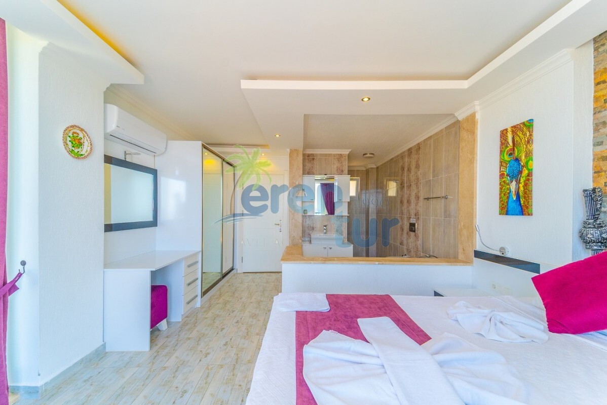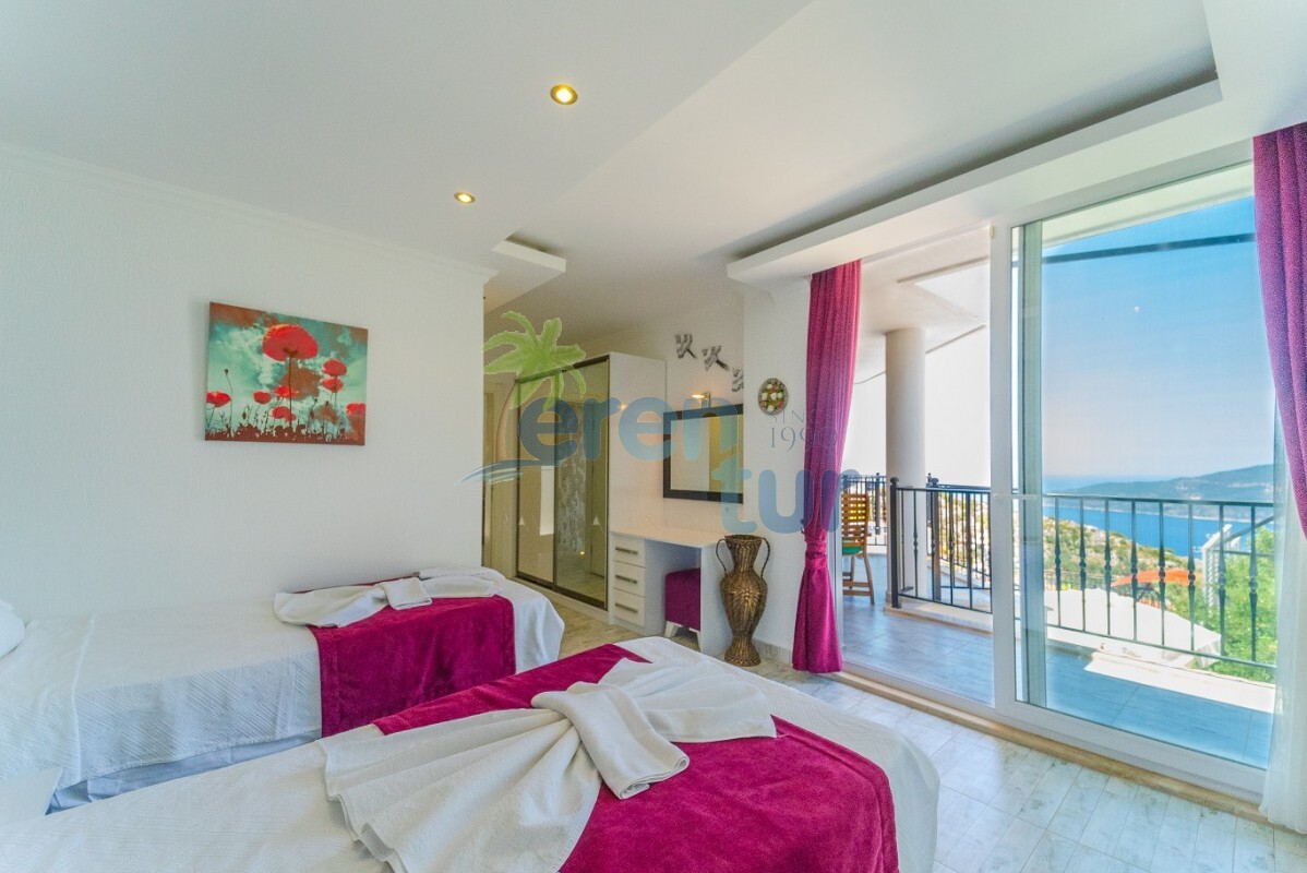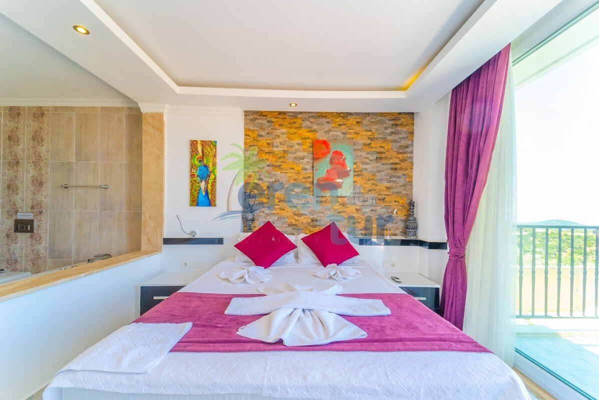 Villamızın özellikleri arasında, geniş ve ferah bir oturma odası, modern bir açık plan mutfak ve banyolu bir süit yatak odası bulunmaktadır. İkinci katta ise iki adet çift kişilik süit yatak odası yer alır. Ana yatak odası, deniz manzarasına karşı açık bir jakuzi ve geniş bir banyo sunmaktadır. Villamızda ayrıca ortak kullanım balkonu, muhteşem Kalkan koyu manzarasına karşı içeceklerinizi yudumlayabileceğiniz bir oturma grubu ile donatılmıştır.