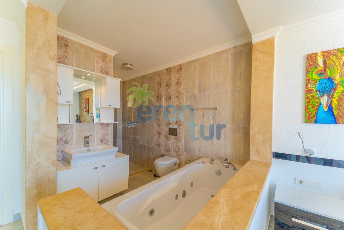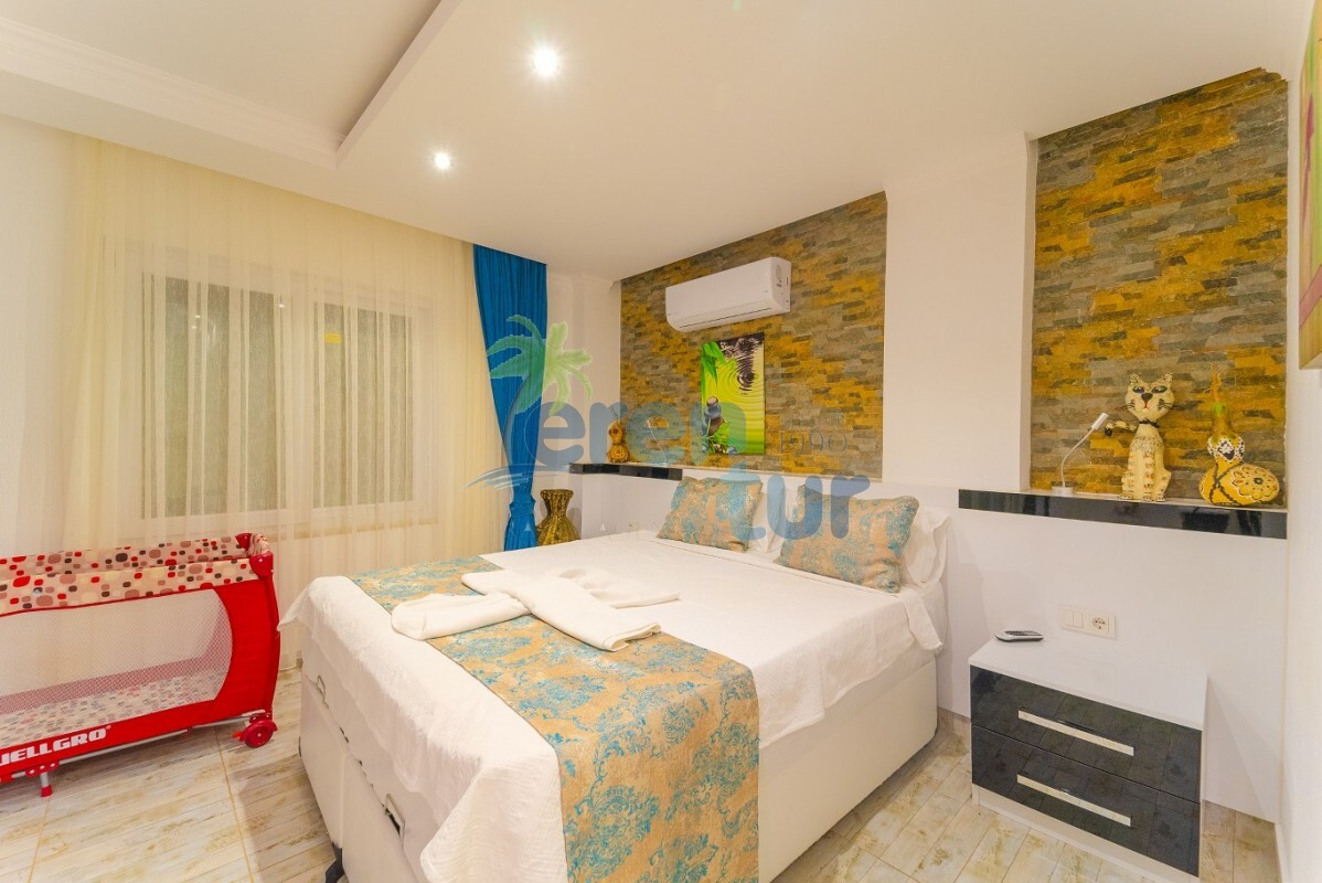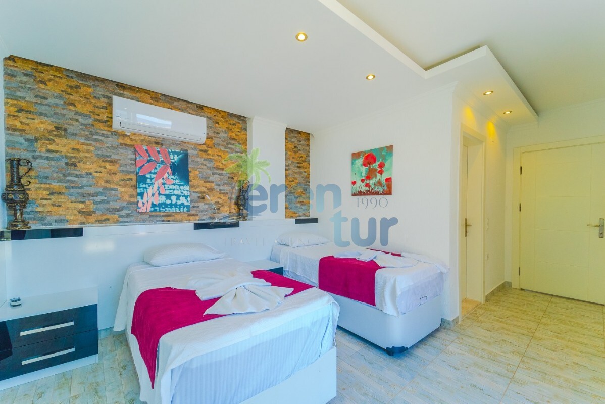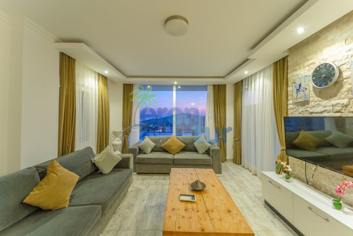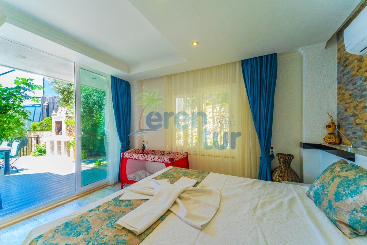 Villamızın özellikleri arasında, geniş ve ferah bir oturma odası, modern bir açık plan mutfak ve banyolu bir süit yatak odası bulunmaktadır. İkinci katta ise iki adet çift kişilik süit yatak odası yer alır. Ana yatak odası, deniz manzarasına karşı açık bir jakuzi ve geniş bir banyo sunmaktadır. Villamızda ayrıca ortak kullanım balkonu, muhteşem Kalkan koyu manzarasına karşı içeceklerinizi yudumlayabileceğiniz bir oturma grubu ile donatılmıştır.