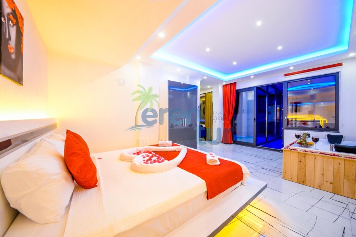 Kalkan Ulugöl mevkiinde bulunan tatil villamız 1 yatak odası ile 2 kişilik konaklama kapasitesine sahiptir. Villamızın havuz kısmı korunaklı hale getirilmiştir. Muhafazakar çiftlerimiz ve balayı çiftlerimiz için ideal tatil villalarımız arasındadır. Villamızda kış dönemlerinde de konaklama yapabilmeniz için kapalı ısırmlaı havuz bulunmaktadır. Doğa içerisinde bulunan villamız sizlere sessiz, sakin ve huzurlu bir tatil imkanı sağlamaktadır.