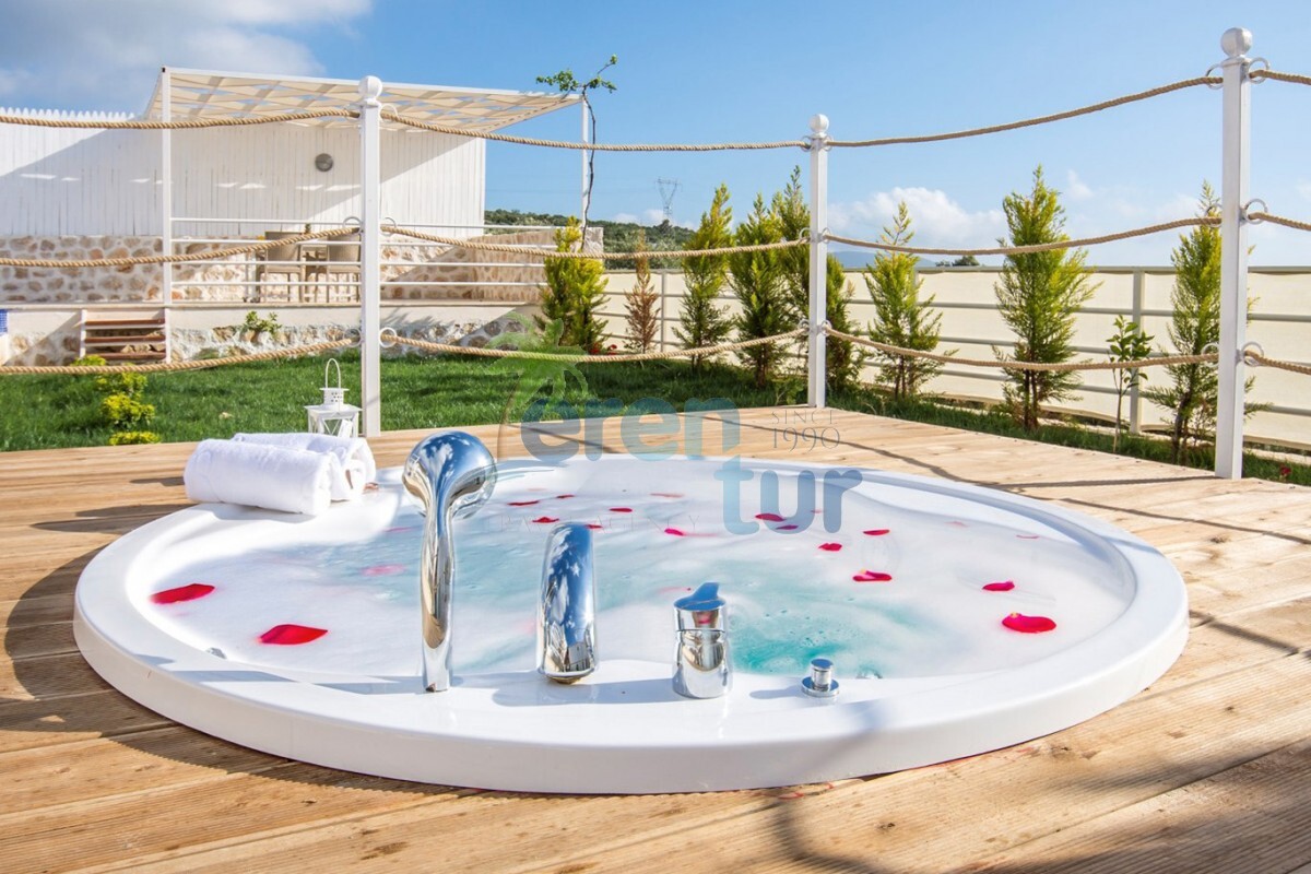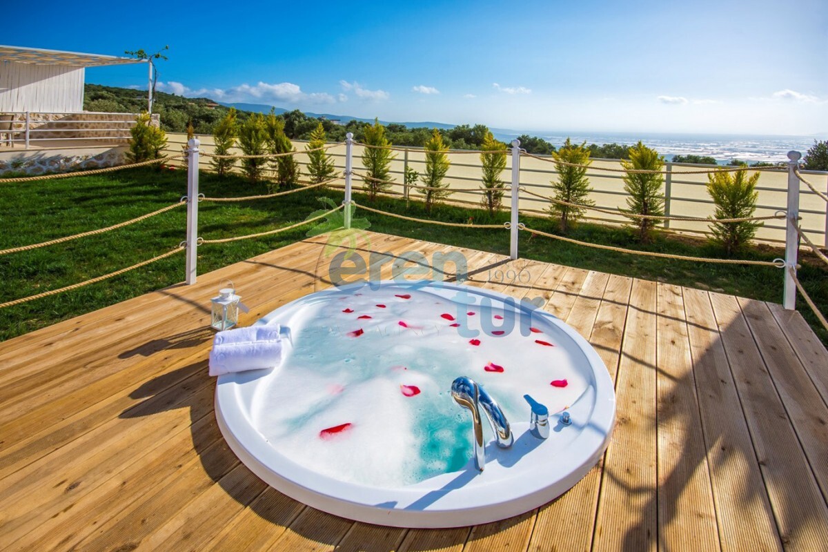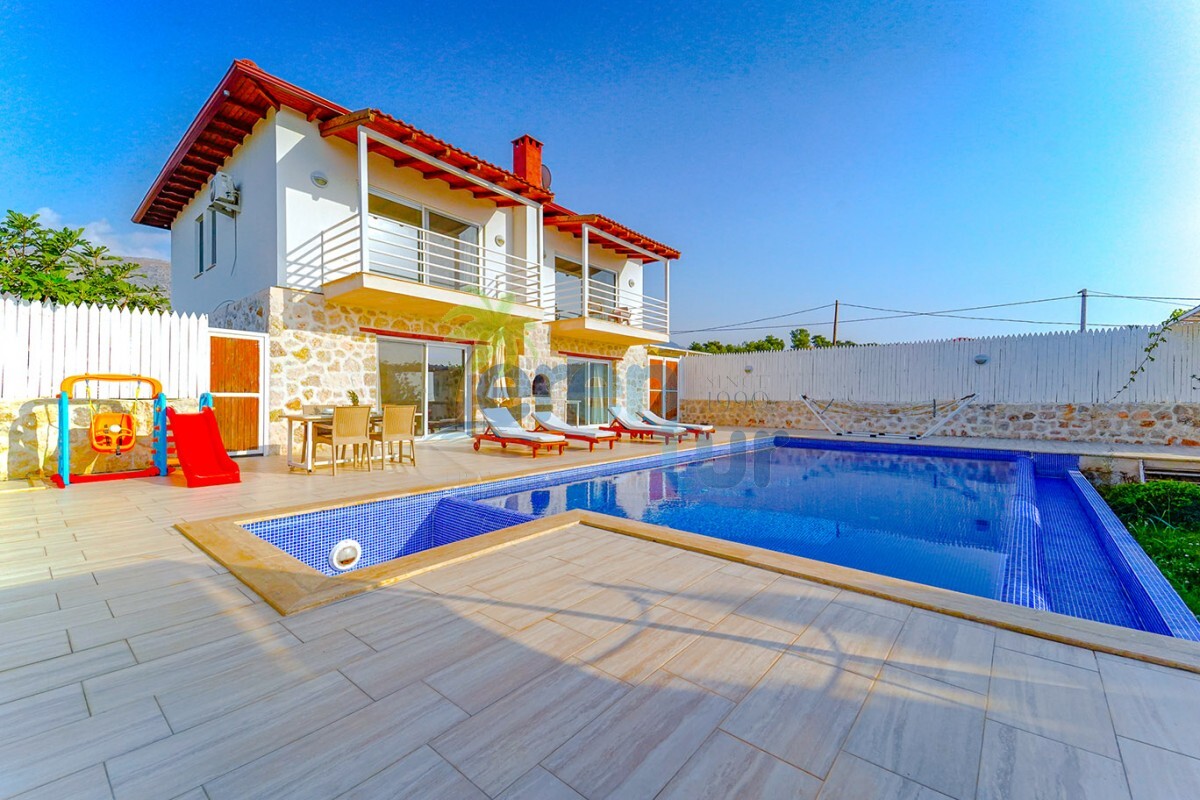 Tamamen sizlerin ve çocuklarınızın keyif alması amacı ile dizayn edilen villamızın havuz terasında geniş bir yüzme havuzu, çocuk havuzu, hamak ve manzaraya karşı dışarıda da keyif yapmak yada günün yorgunluğunu atmanız için 1,50 mt x 1,50 mt gömme jakuzimiz bulunmaktadır. Bu jakuzide içeceklerinizi yudumlarken dinlenebilirsiniz. Villamız içinde ihtiyacınız olan tüm mobilya mutfak araç gereçleri ütü saç kurutma makinesine kadar mevcuttur.