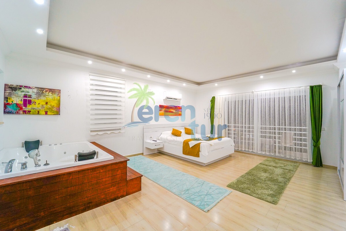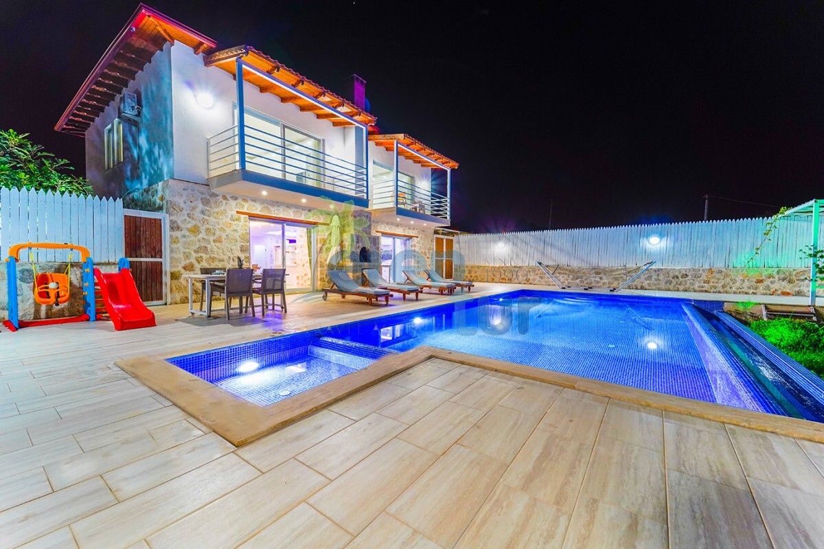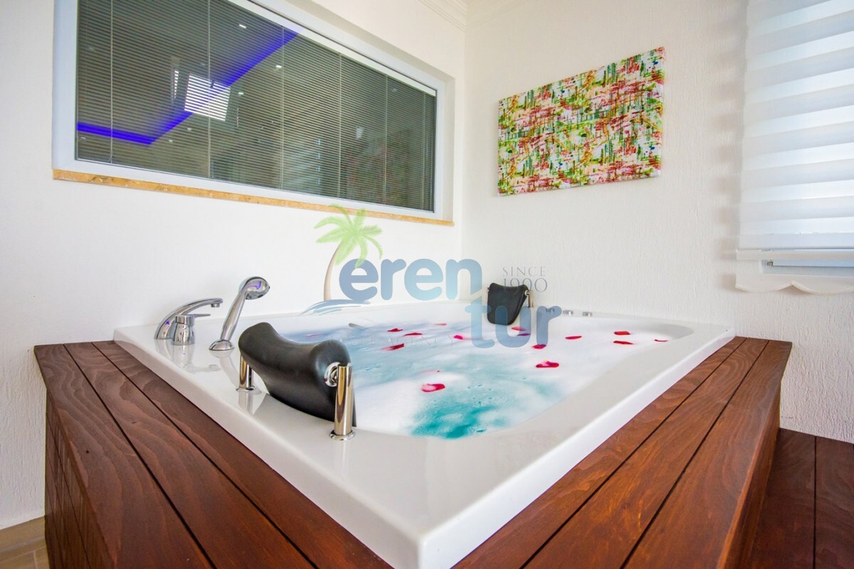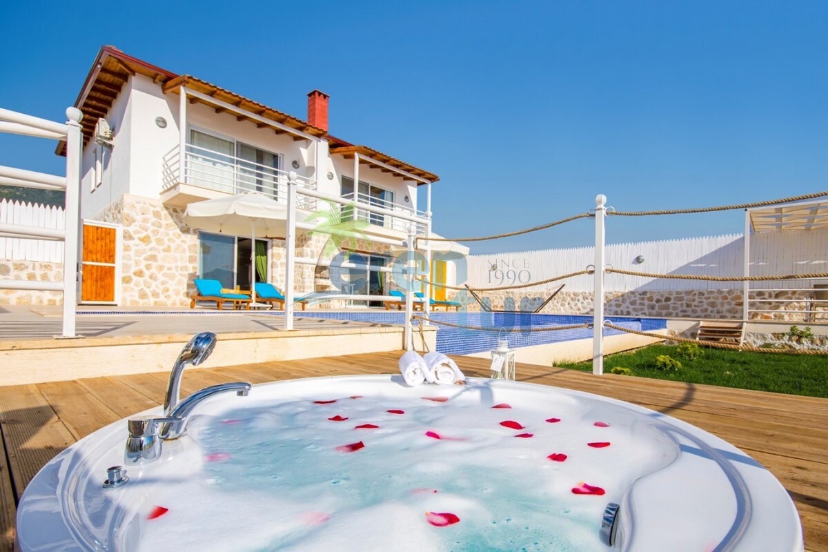 Tamamen sizlerin ve çocuklarınızın keyif alması amacı ile dizayn edilen villamızın havuz terasında geniş bir yüzme havuzu, çocuk havuzu, hamak ve manzaraya karşı dışarıda da keyif yapmak yada günün yorgunluğunu atmanız için 1,50 mt x 1,50 mt gömme jakuzimiz bulunmaktadır. Bu jakuzide içeceklerinizi yudumlarken dinlenebilirsiniz. Villamız içinde ihtiyacınız olan tüm mobilya mutfak araç gereçleri ütü saç kurutma makinesine kadar mevcuttur.