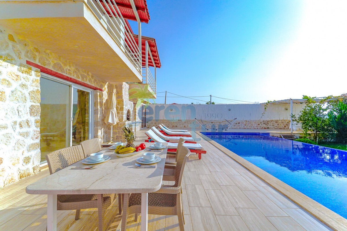 Kalkan Üzümlü köyünde bulunan bu 2 süit (banyolu) yatak odalı tatil villası 4 kişilik kapasiteye sahiptir. Üzümlü köyünün en güzel manzaralı mevkiinde bulunan villamızdan muhteşem Patara kumsalını ve havanın güzel olduğu günlerde Rodos adasını dahi görebilirsiniz.