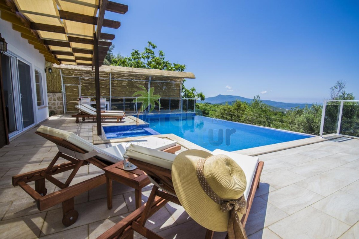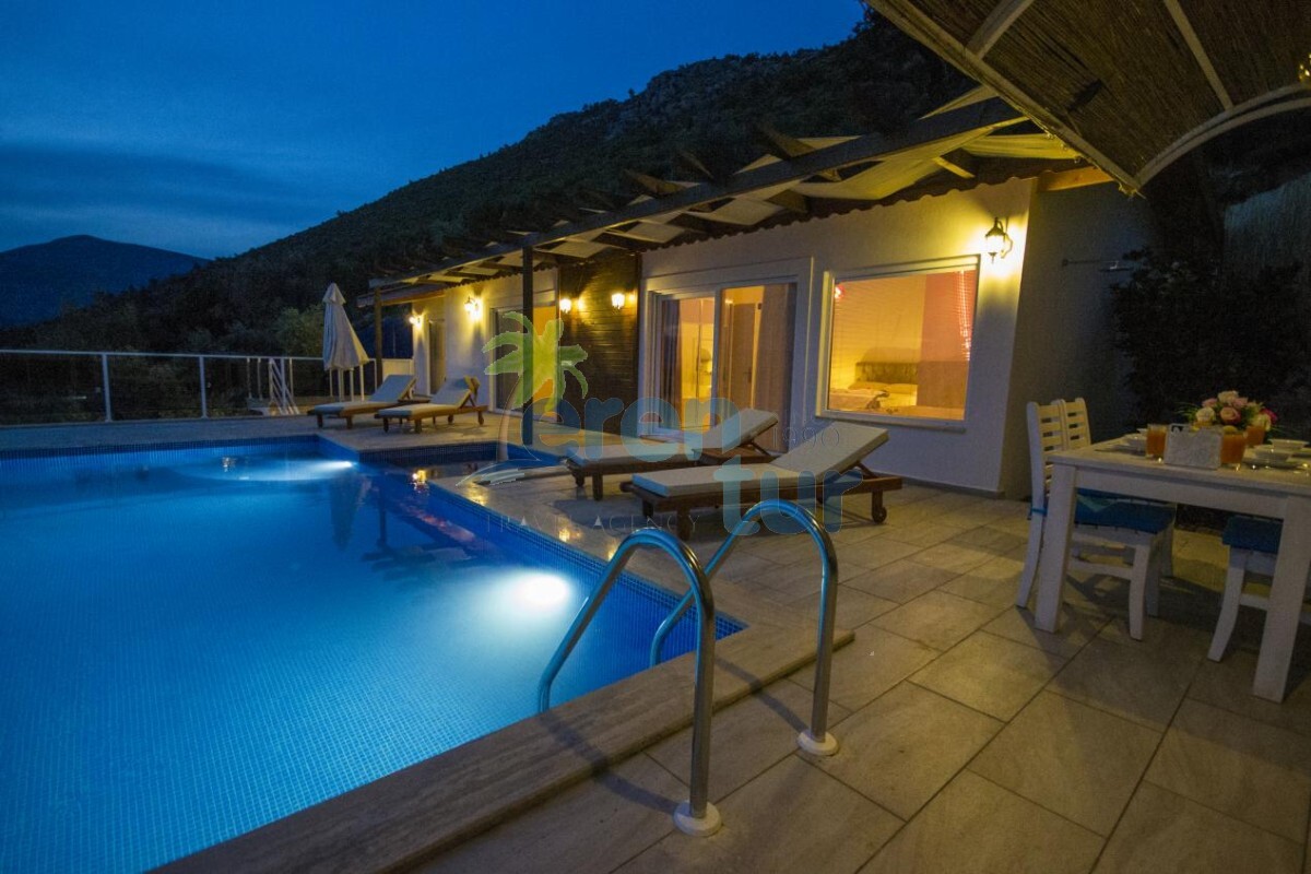 Villamız Kalkan Üzümlü mevkiinde yer almaktadır. 2 yatak odası ile 4 kişilik konaklama kapasitesine sahiptir. Vİllamız Üzümlü köyü merkezine 1 km mesafededir. Geniş havuz terası ile sevdiklerinizle keyifli bir tatil sizleri beklemektedir. Havuz ve havuz terası korunaklı hale getirilmiş olan villamız muhafazakar ailelerimiz ve balayı çiftlerimiz için ideal tatil villalarımız arasındadır. Villamızın havuz terası önündeki yoldan 4 metre yüksekliktedir. Doğa içinde bulunan tatil villamız sizlere sessiz, sakin ve huzurlu bir tatil imkanı sağlamaktadır. Keyifli bir tatil için KAV257 kodlu villamızı inceleyebilirsiniz.