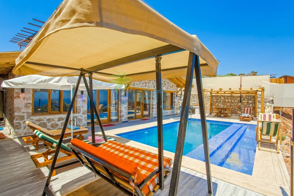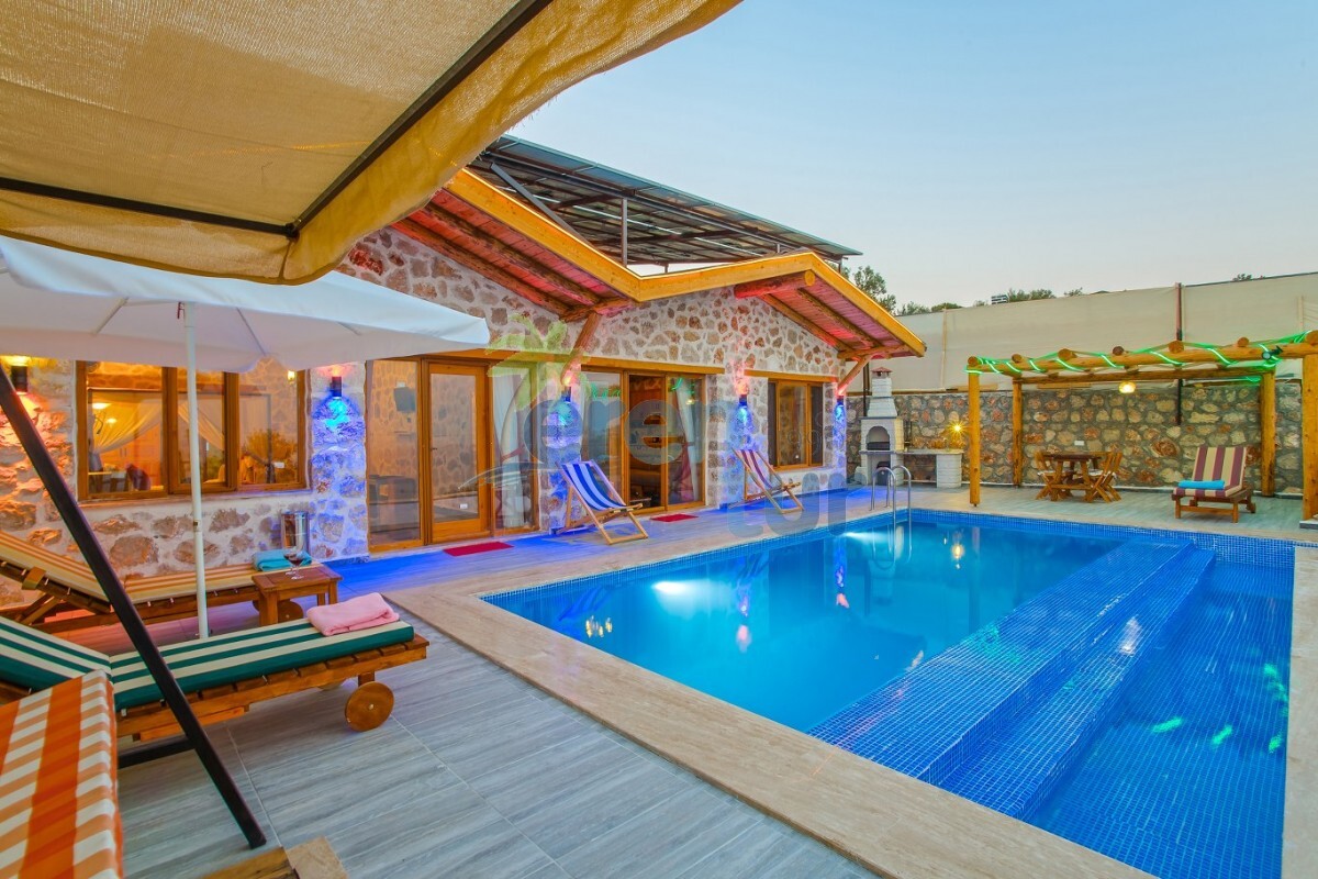 Villamız Kalkan'ın Yeşilköy mevkisinde yer almaktadır. 1 yatak odası ile toplamda 2 kişilik konaklama kapasitesine sahiptir. Bahçe ve havuz terası korunaklı olmasından dolayı mutaassıp aileler ve gözlerden uzak tatil geçirmek isteyen balayı çiftlerimiz için idealdir. Lokasyon olarak merkezi bir bölgede yer almasından dolayı tatiliniz esnasında hem denizin hemde havuzun keyfini çıkarabilirsiniz.