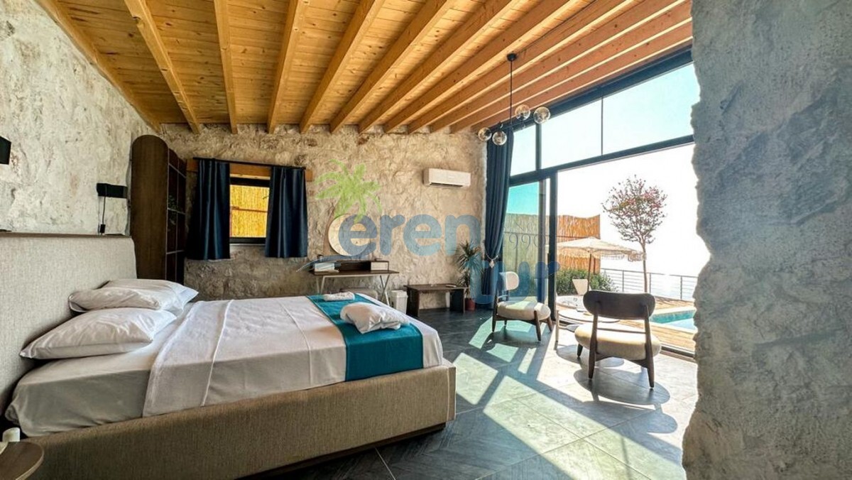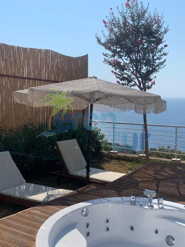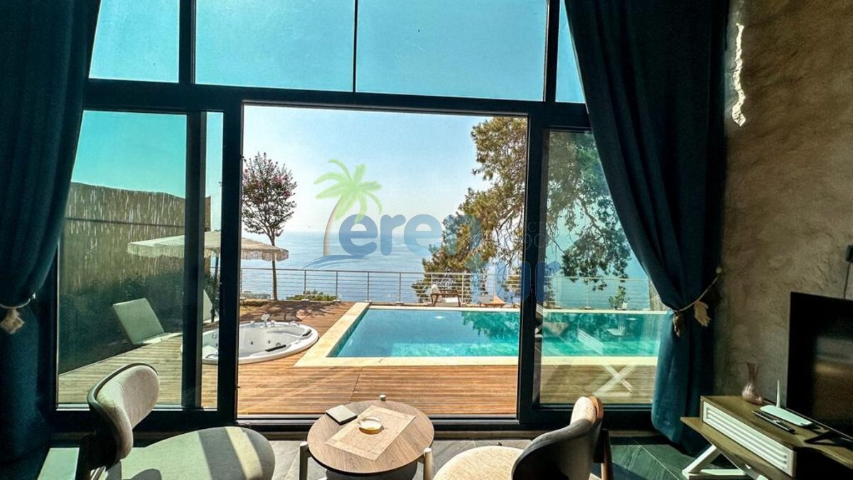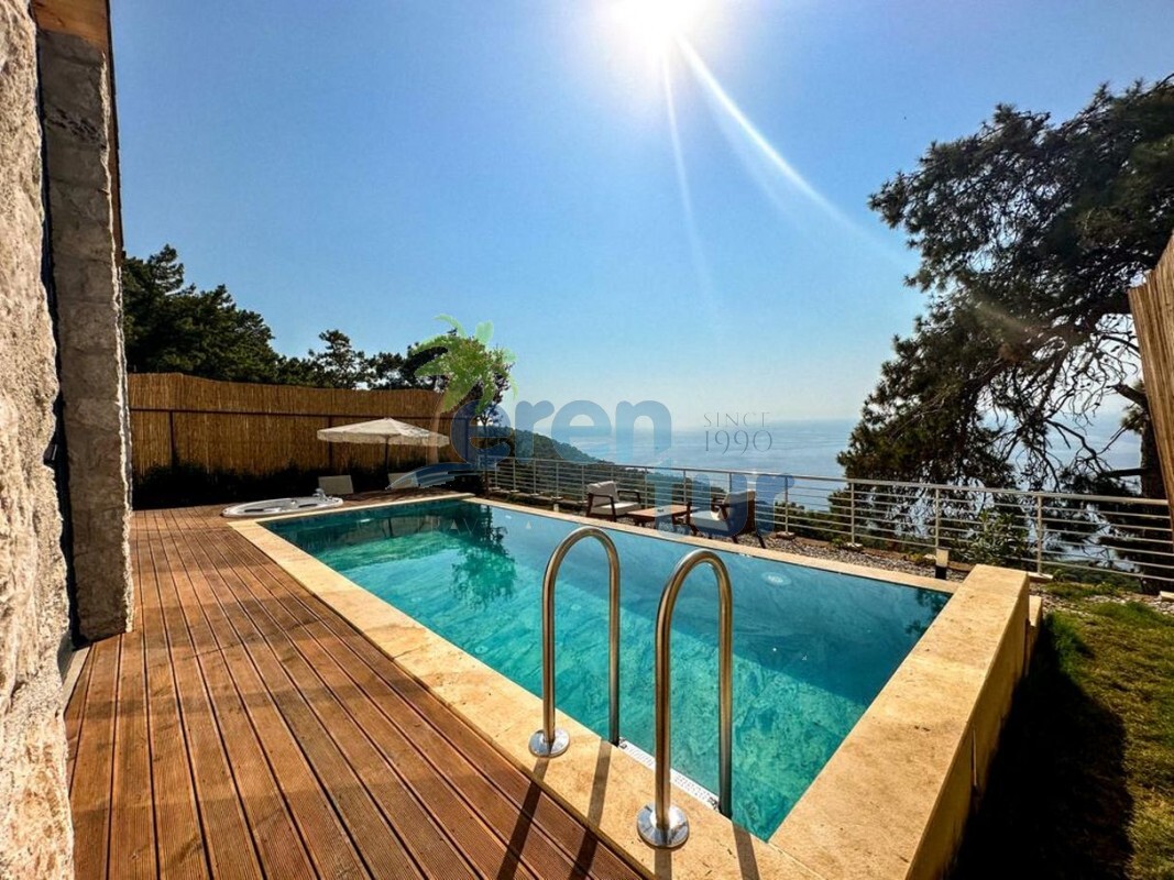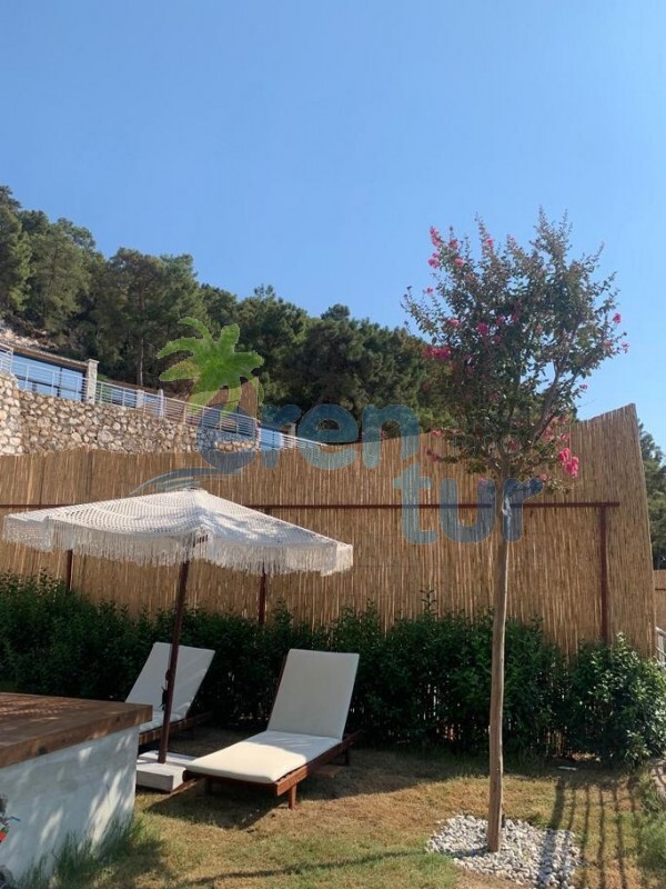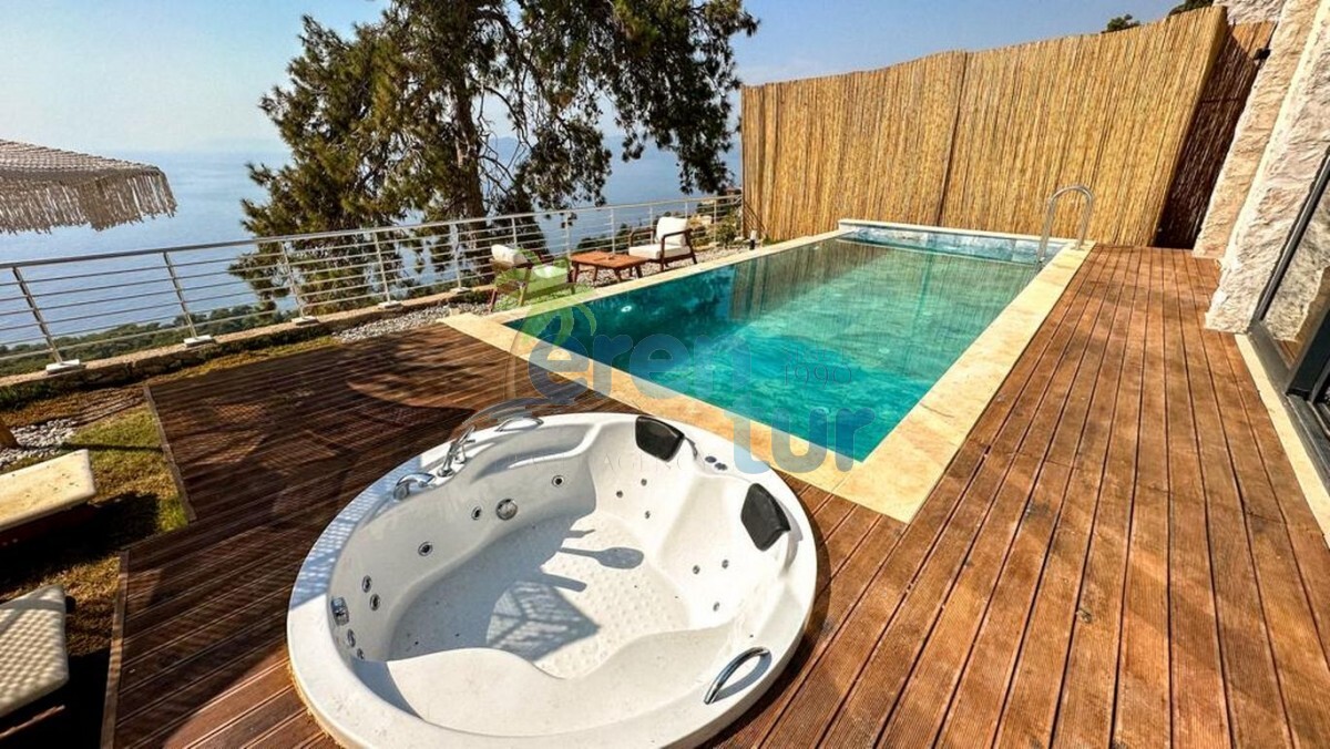 Havuz Terası: Deniz manzaralı terasta özel yüzme havuzu, jakuzi, 2 adet şezlong, güneş şemsiyesi, 2 adet koltuk ve sehpa bulunmaktadır. Villada mangal veya barbekü imkanı bulunmamaktadır.