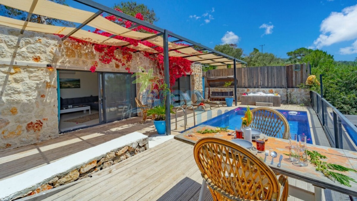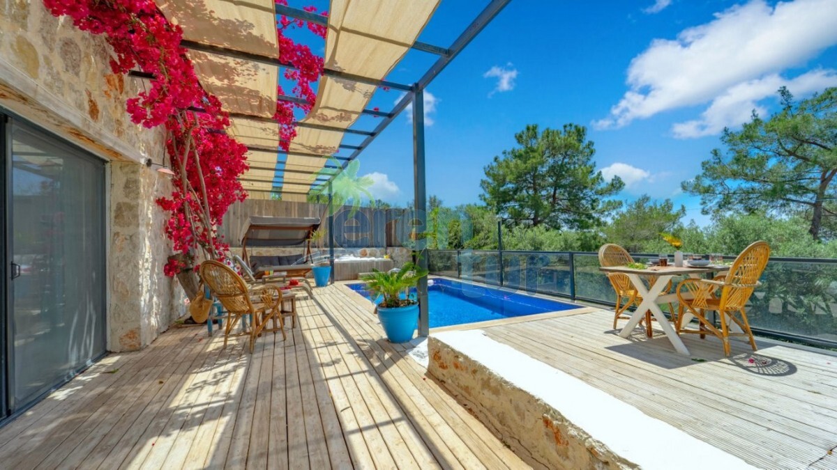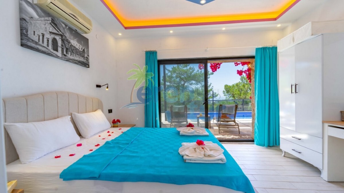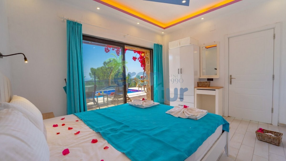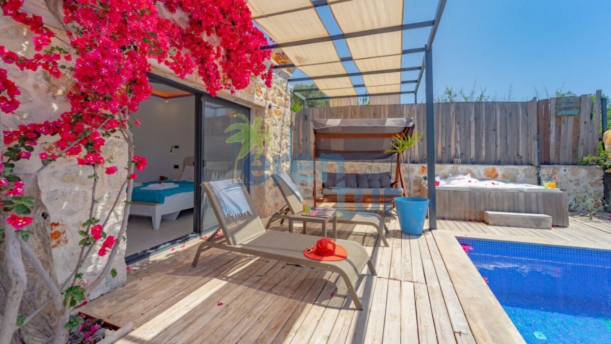 Kalkan'ın Patara mevkiinde yer alan kiralık villamız tek yatak odası ile toplamda iki kişi konaklama kapasiesine sahiptir. Loksyon olarak merkezi bir bölgede yer almaktadır. Kalkan şehir merkezine ortalama olarak 11 kilometre mesafede olan villamız Patara plajı'na ve köyüne 3.5 kilometre mesafededir. Bahçe ve havuz terası korunaklı olan villamız gözlerden uzak tatil geçirmek isteyen balayı çiftleri ve mutaassıp aileler için idealdir. Ayrıca villamızın havuz terasında jakuziside mevcuttur. Villamız manzarası Patara plajına görmesinden dolayı her akşam muhteşem bir gün batımı eşliğinde akşam yemeklerinizi yiyebileceksiniz.